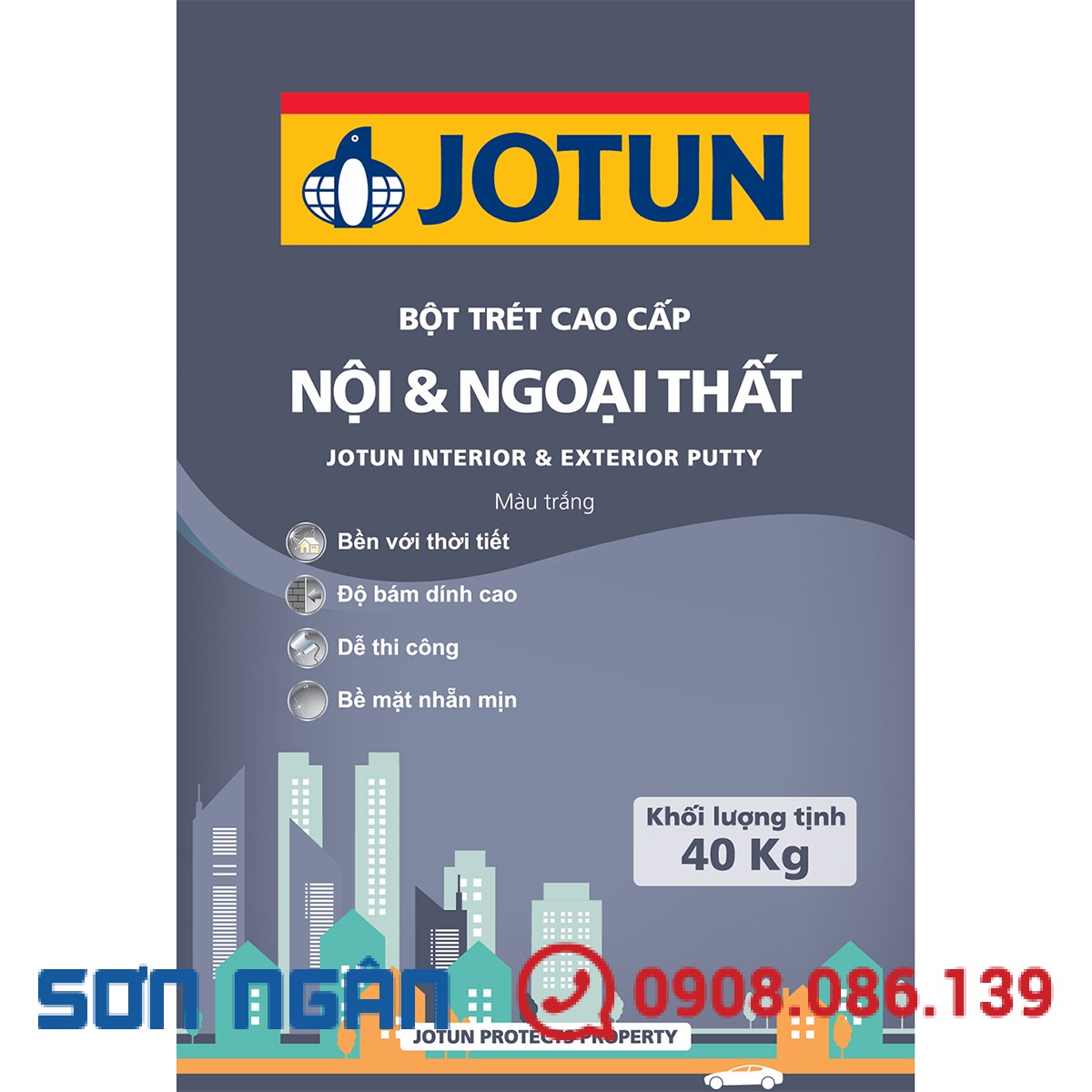 Bột trét cao cấp nội và ngoại thất Jotun 40kg là lựa chọn lý tưởng giúp công trình của bạn đạt chất lượng hoàn thiện cao, bền đẹp theo thời gian và tiết kiệm chi phí thi công.